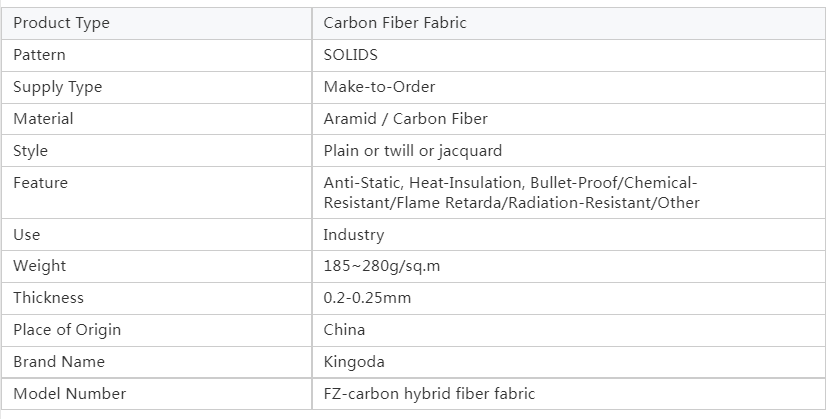 Packaging Details: Carbon fiber fabric and aramid hybrid fiber fabric seaworthy packing or as customers' request.